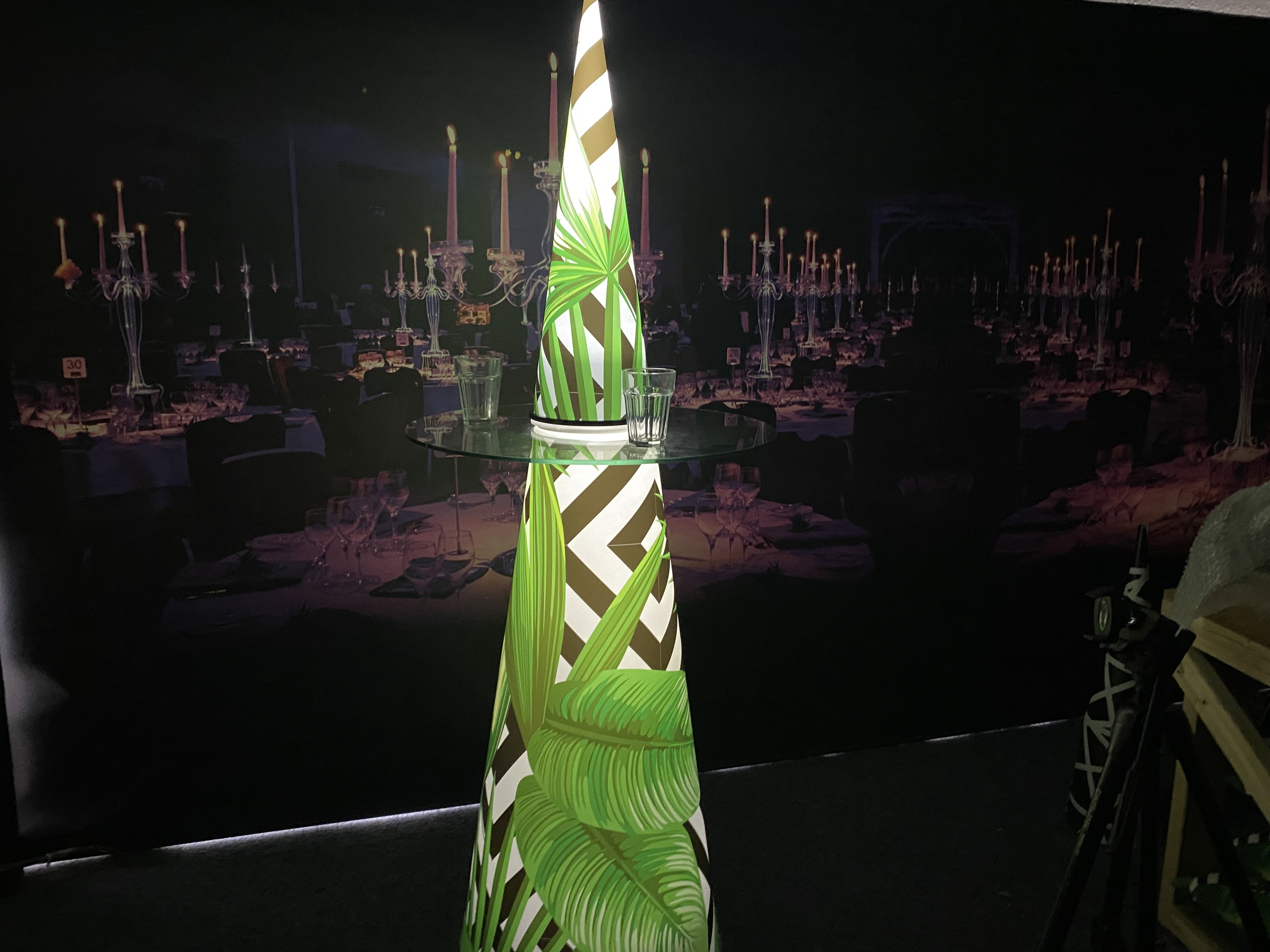 Each spire can be custom printed to match your theme or brand identity – from bold patterns to company logos and colour schemes. This flexibility ensures your event branding extends beyond the walls and décor, making the tables themselves an integral part of the experience.
