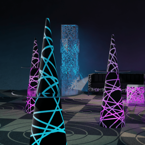 Urban Mesh – A Bold New Event Theme Transform your event with Urban Mesh, a cutting-edge design concept that blends geometric mesh structures, glowing towers, and modular blocks into a sleek and modern look. Perfect for corporate events, brand launches, parties, and exhibitions, this theme creates an immersive atmosphere that feels both futuristic and stylish. The Urban Mesh collection features illuminated poseur tables, coffee tables, statement columns, and geometric table centres – all designed with striking mesh patterns and vibrant LED lighting. The modular mesh blocks are the heart of this theme, allowing endless creativity: stack them into dramatic columns, arrange them into glowing walls, or use them as low-level décor accents. Whether you want to define event spaces, build striking backdrops, or create a high-energy lounge environment, Urban Mesh adapts to your venue. The dynamic lighting options let you customise the colour scheme to match your brand or event theme – from cool corporate blues to bold neon party hues. Bring a fresh, modern edge to event theming with Urban Mesh – where geometry meets creativity.
